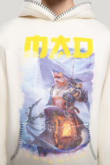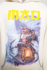 Framed by the MAD TIGERS logo in contrasting yellow, the design becomes a visual mantra: It’s a visual reminder that creativity can be wild and still composed, powerful yet calm. What sets this hoodie apart is the contrast overstitching around the kangaroo pockets, Hood adding a sculptural definition, elevating the silhouette with a subtle, crafted edge.