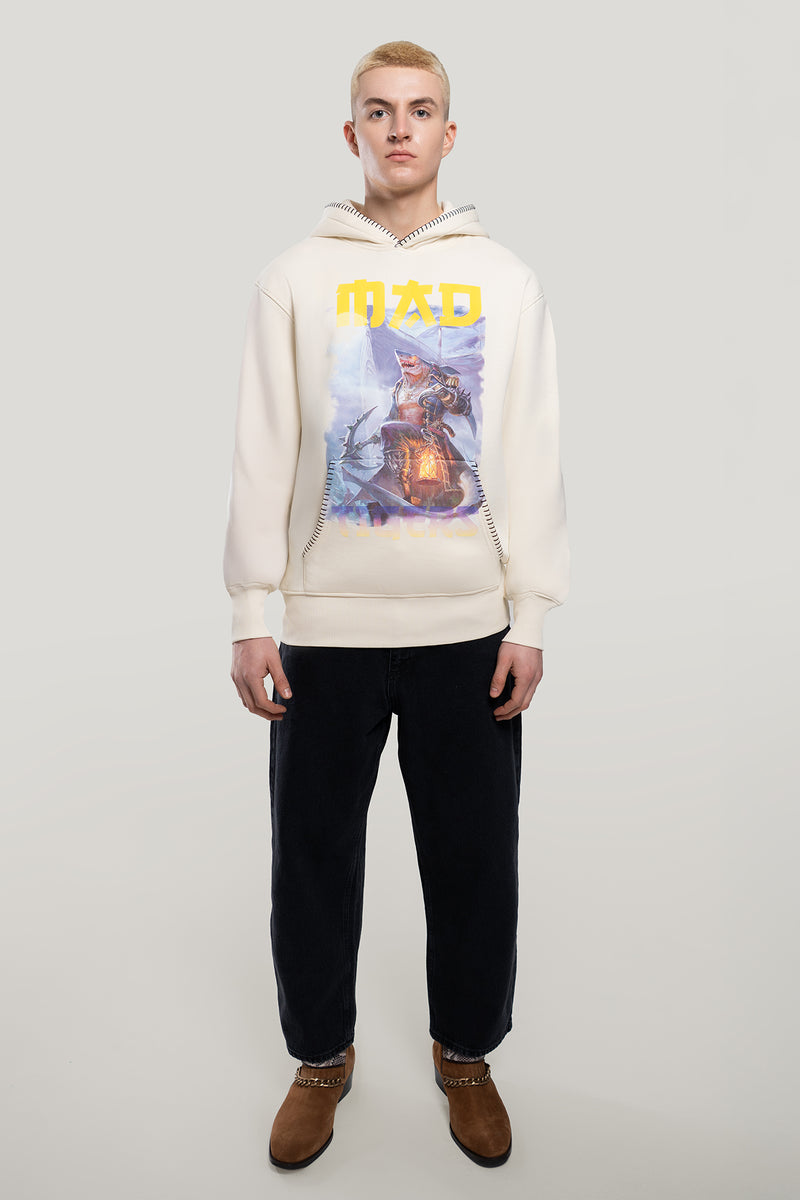 Framed by the MAD TIGERS logo in contrasting yellow, the design becomes a visual mantra: It’s a visual reminder that creativity can be wild and still composed, powerful yet calm. What sets this hoodie apart is the contrast overstitching around the kangaroo pockets, Hood adding a sculptural definition, elevating the silhouette with a subtle, crafted edge.